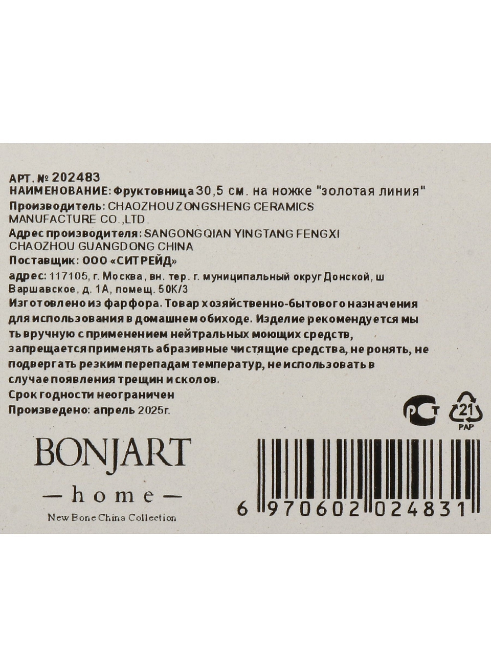 Покупатели часто спрашивают: «Как выбрать фруктовницу для дома или подарка?» — ответ прост: Bonjart сочетает премиальный фарфор, достаточный диаметр (30,5 см) и универсальность использования. В отличие от стеклянных или пластиковых аналогов, фарфор остаётся холодным, не впитывает запахи и сохраняет свежесть продуктов. Не рекомендуется использовать в микроволновке и посудомоечной машине — ручная мойка сохраняет блеск и целостность золотого декора.