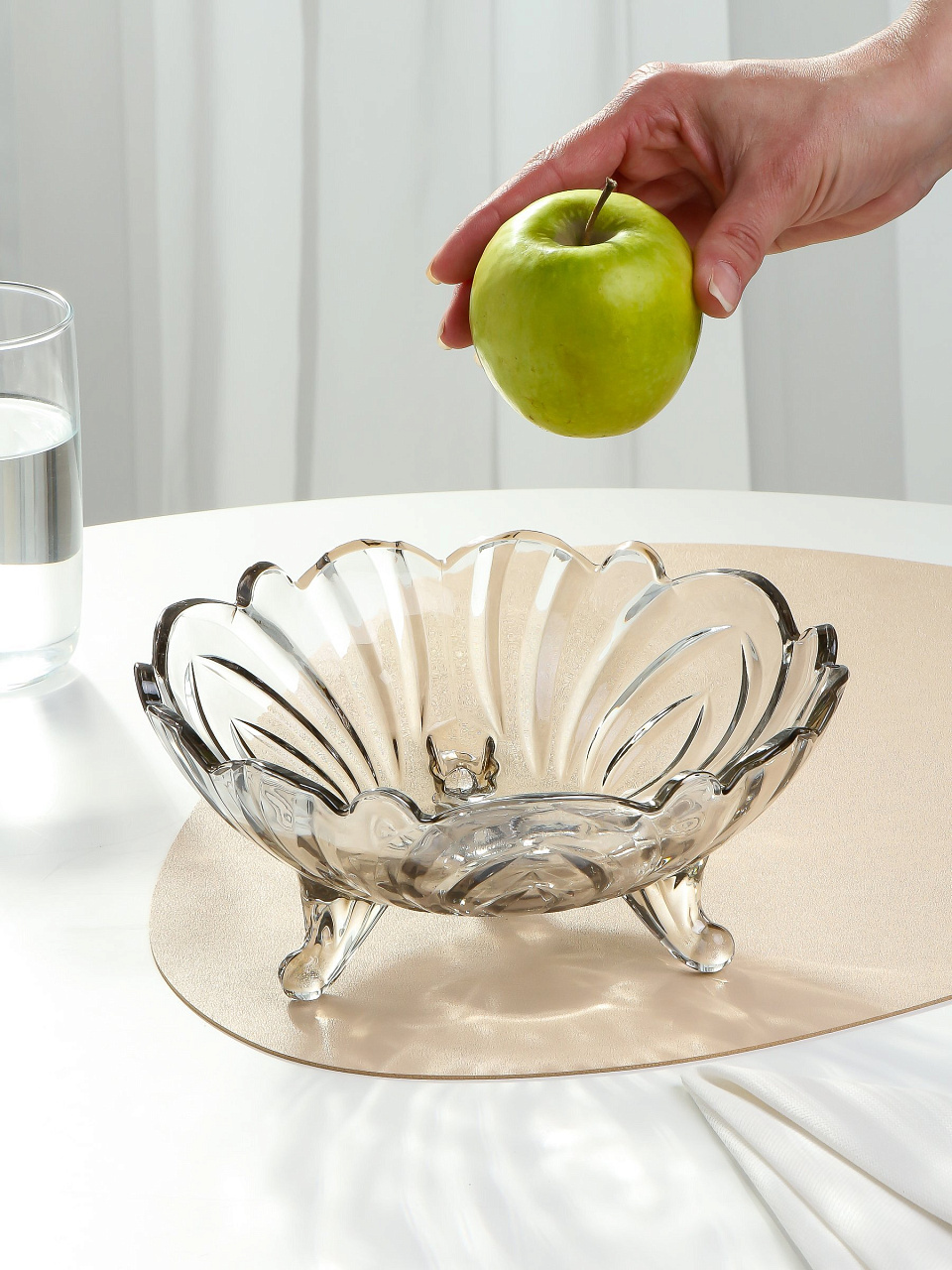 Красивая элегантная ваза для фруктов будет украшением любого обеденного стола. Стекло, из которого изготовлена конфетница, делает ее долговечной в повседневном использовании.