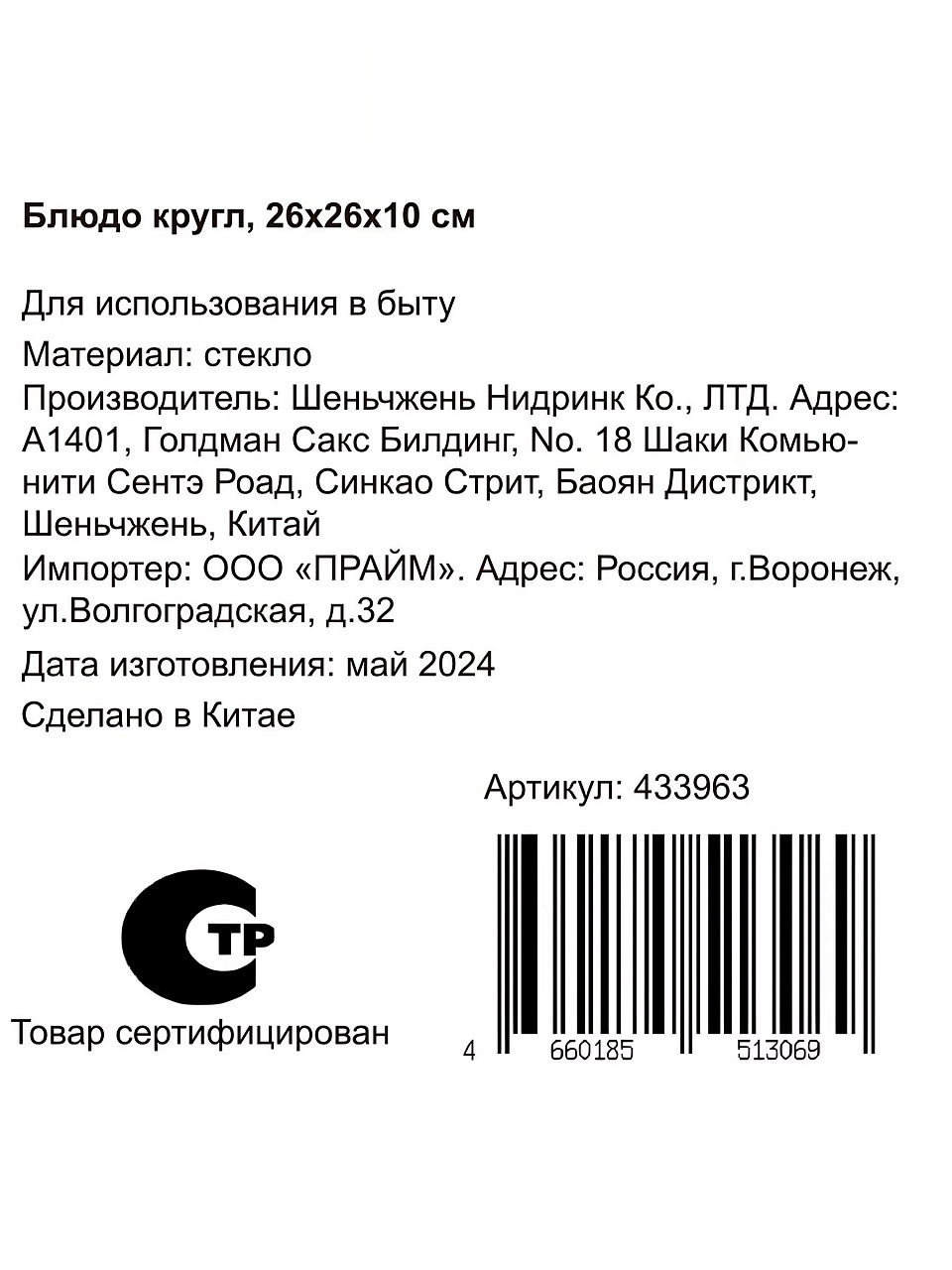 - Материал: стекло.