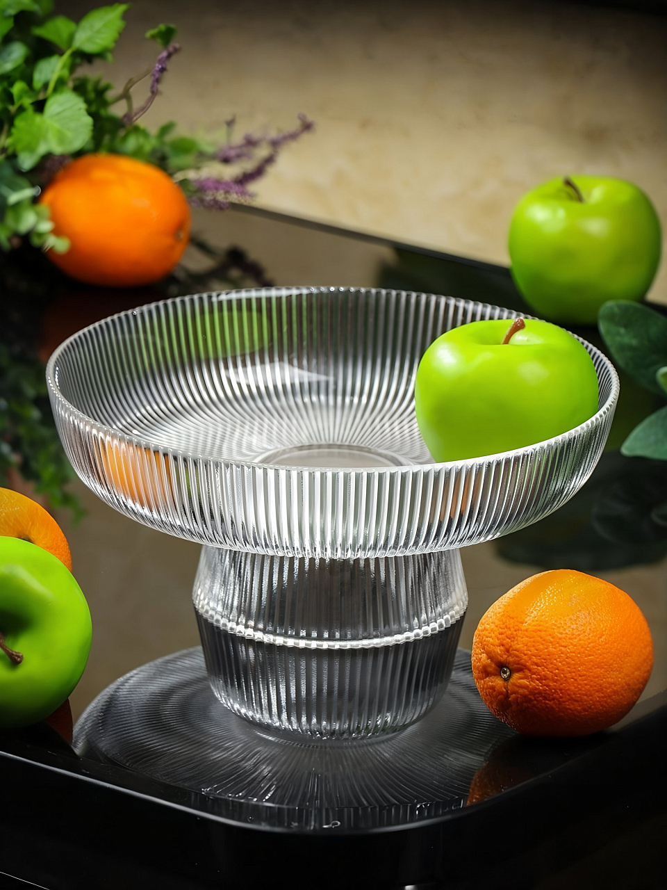 Блюдо на ножке, выполненное из высококачественного стекла, оригинально украсит праздничный стол и поможет красиво расположить пирожные, печенье, конфеты, ягоды и фрукты и т.д. Блюдо с рифлеными краями установлено на изящную ножку, оно эффектно смотрится на любом столе, его эстетичность порадует любую хозяйку.