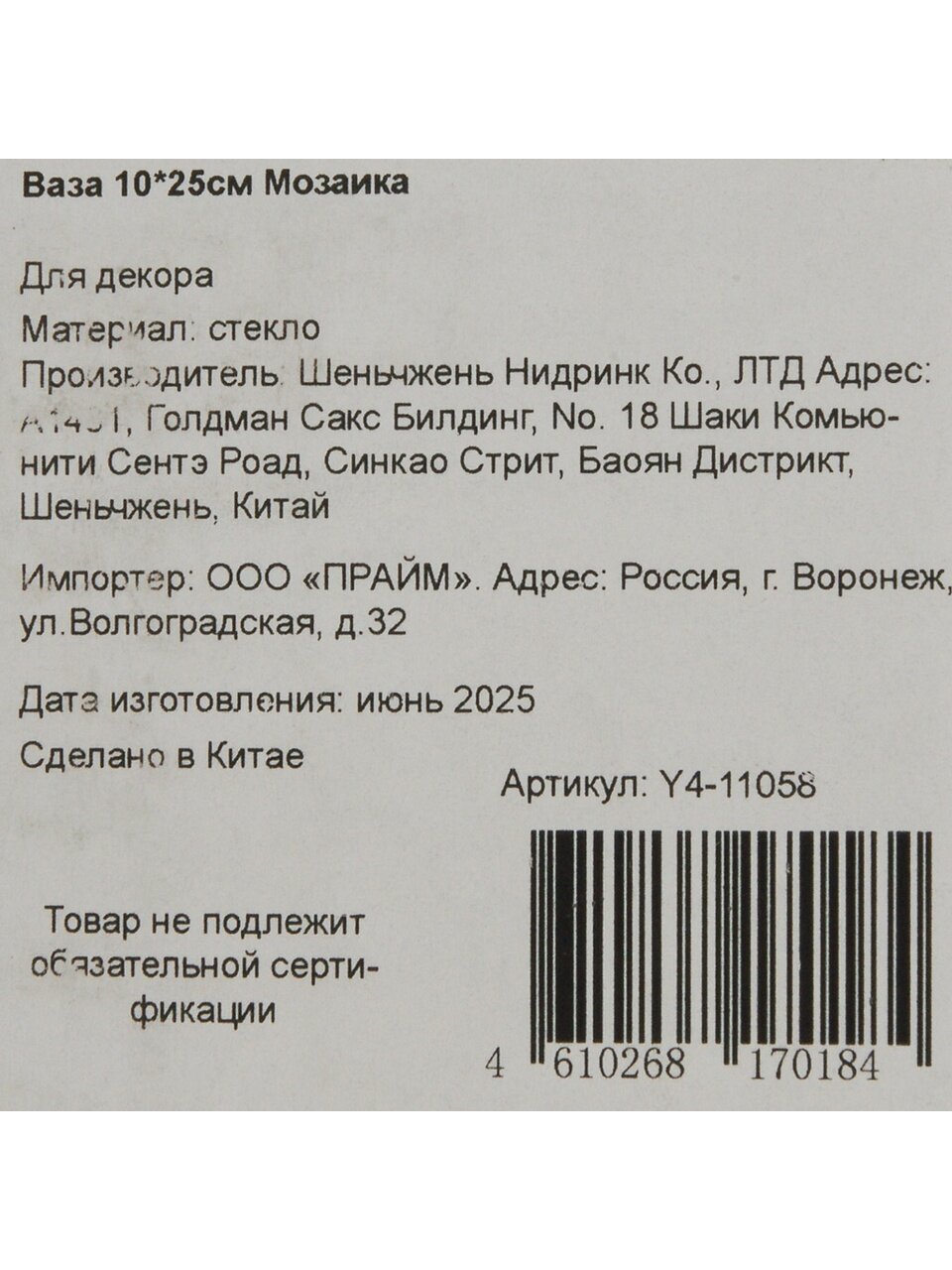 Вы можете приобрести «Ваза стекло, настольная, 10*24 см, Мозаика, серый, Y4-11058» и другие товары в нашем интернет-магазине в Таганроге по низким ценам и с бесплатным самовывозом.