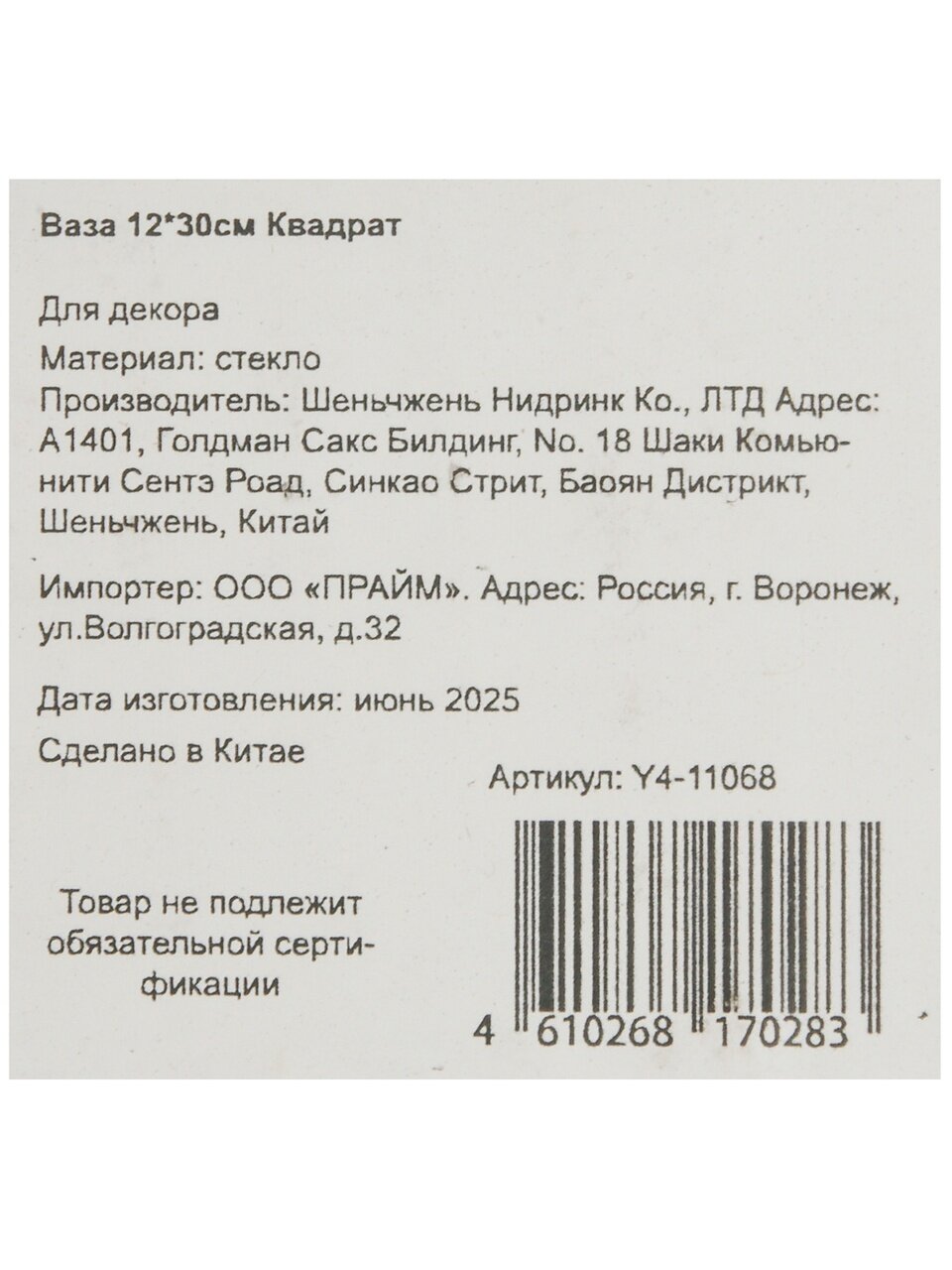 Вы можете приобрести «Ваза стекло, настольная, 12*30 см, Квадрат, синий, Y4-11068» и другие товары в нашем интернет-магазине в Таганроге по низким ценам и с бесплатным самовывозом.