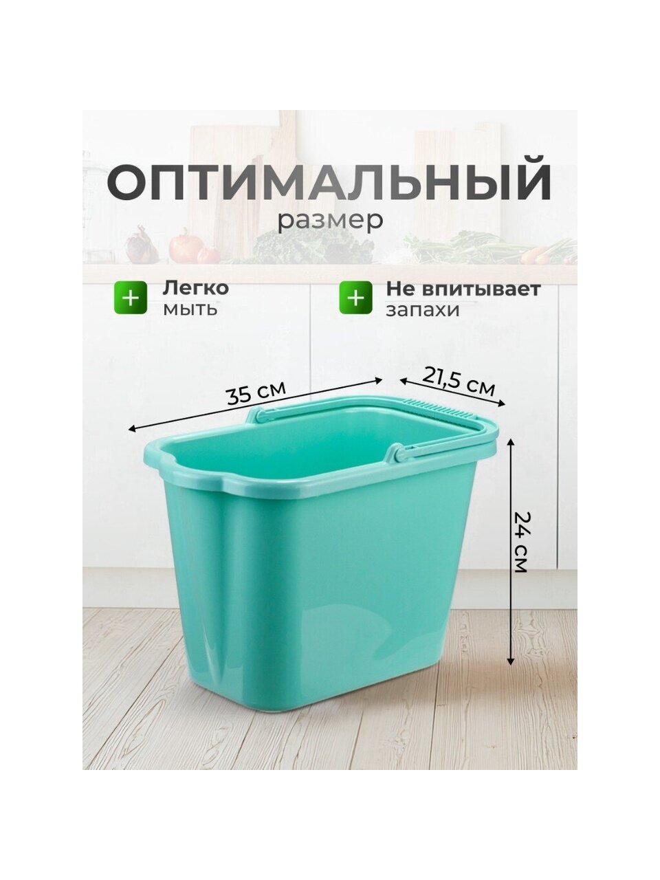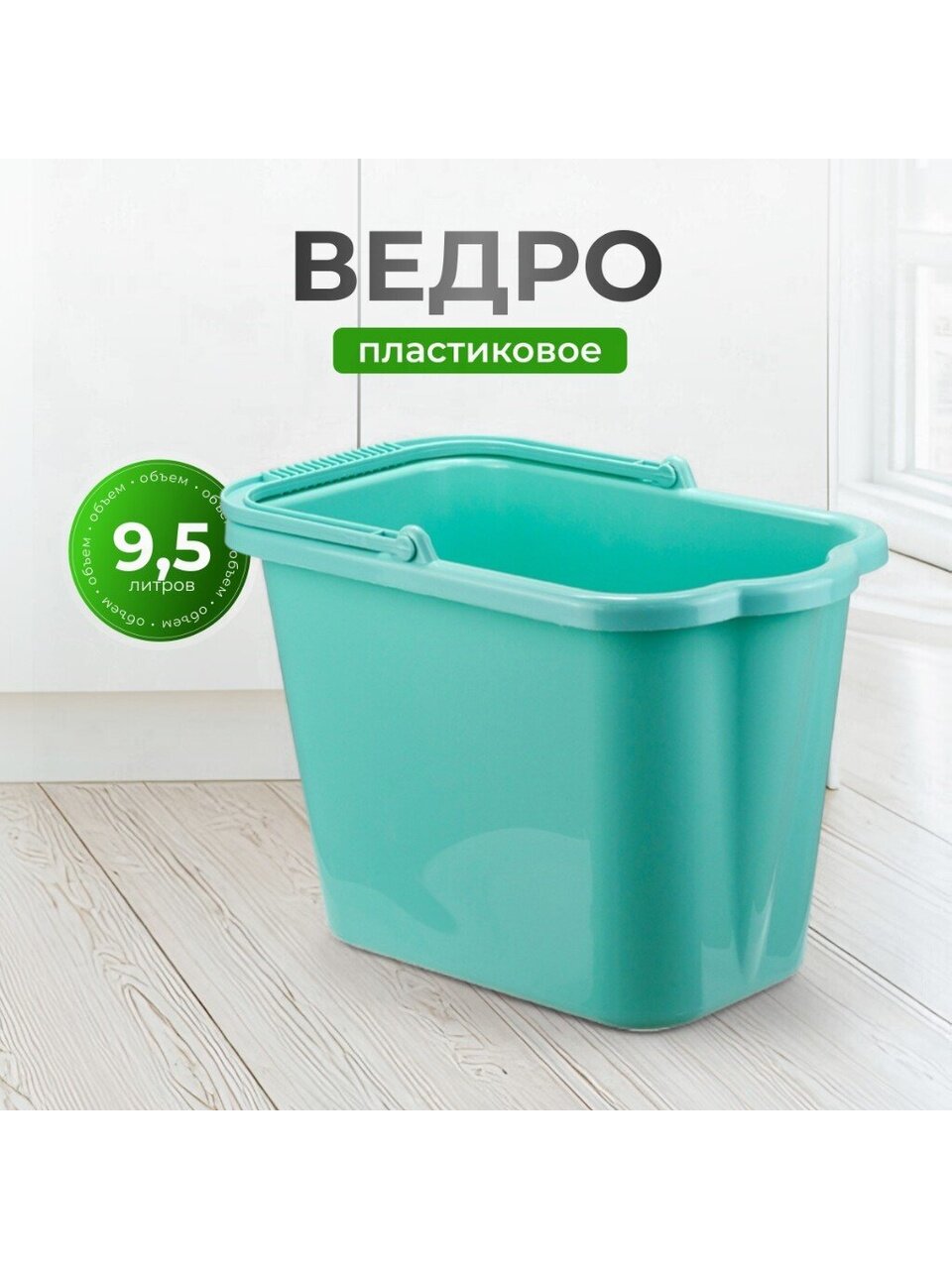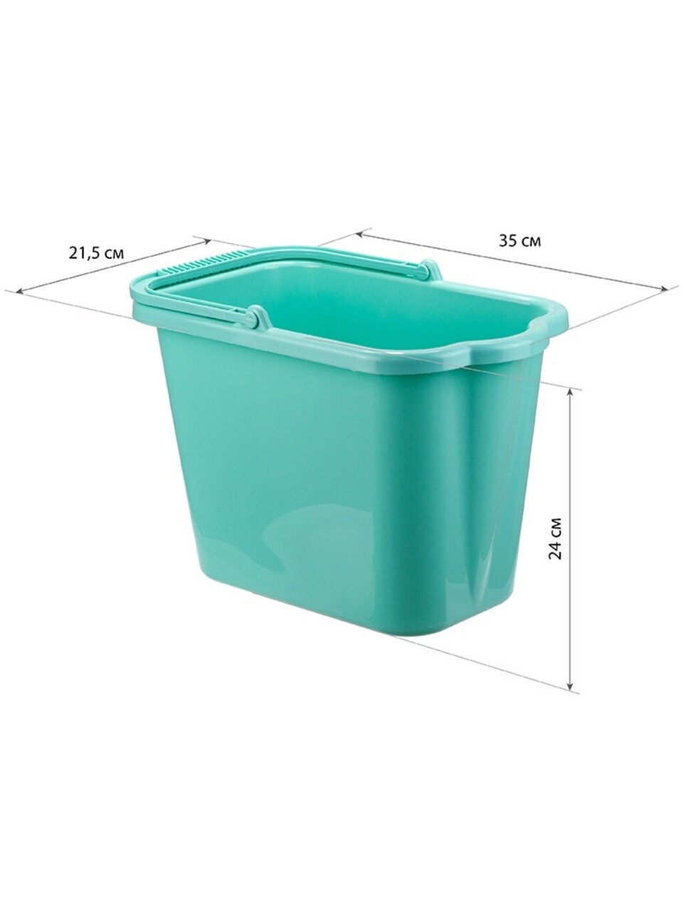 Ведро пластиковое хозяйственное 9.5 л в стильном аквамариновом цвете — идеальный выбор для дома и дачи. Прочный пластик обеспечивает долговечность, а удобный сливной носик облегчает выливание жидкости. Прямоугольная форма экономит место хранения. Размер по верху: 21.5x35 см. Размер дна: 14.5x26 см.