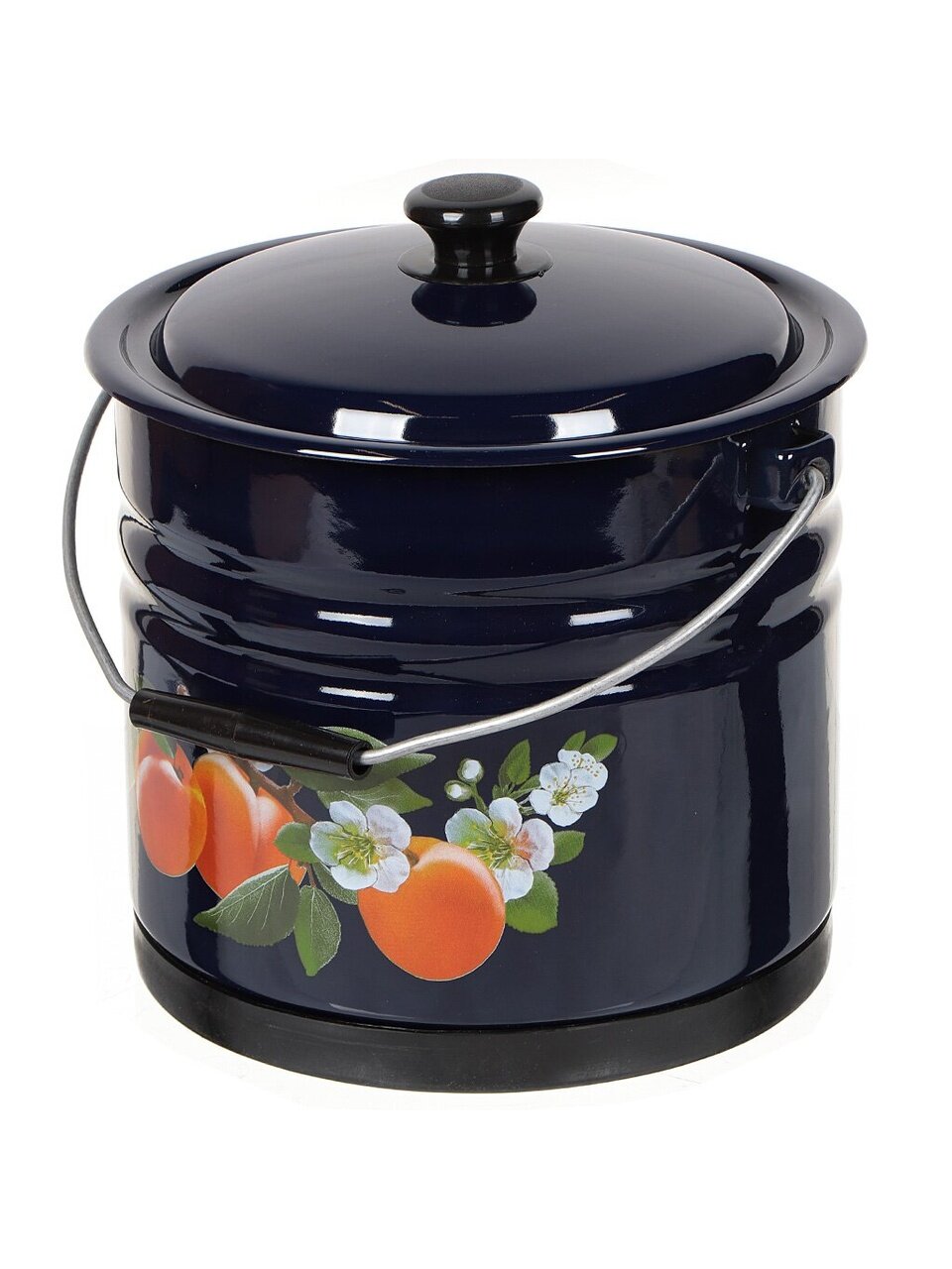 Ведро стальное эмалированное 10 л с крышкой и поддоном от Керченского металлургического завода – практичный и надежный выбор для дома, дачи или хозяйственных нужд. Универсальное ведро цилиндрической формы выполнено из прочной стали и покрыто качественной эмалью, что обеспечивает длительный срок службы и легкость ухода. Эмалированное покрытие защищает поверхность от коррозии, не впитывает запахи и легко очищается после использования. Яркий рисунок с фруктами добавляет изделию привлекательности, а разнообразие цветов позволит выбрать подходящий вариант для любого интерьера.