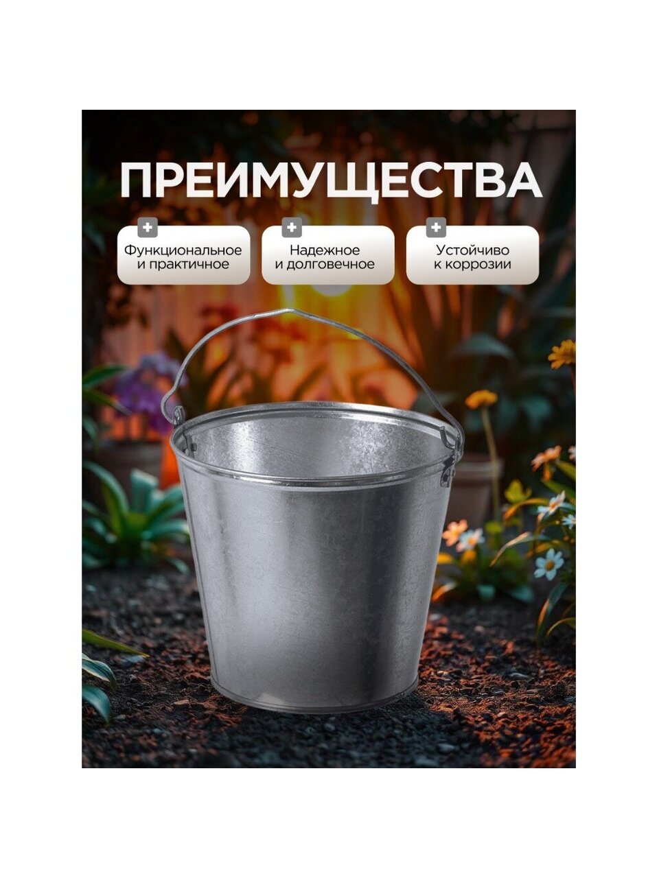 - Оцинкованное ведро по ГОСТ — устойчивая к коррозии сталь, не требует сложного ухода;