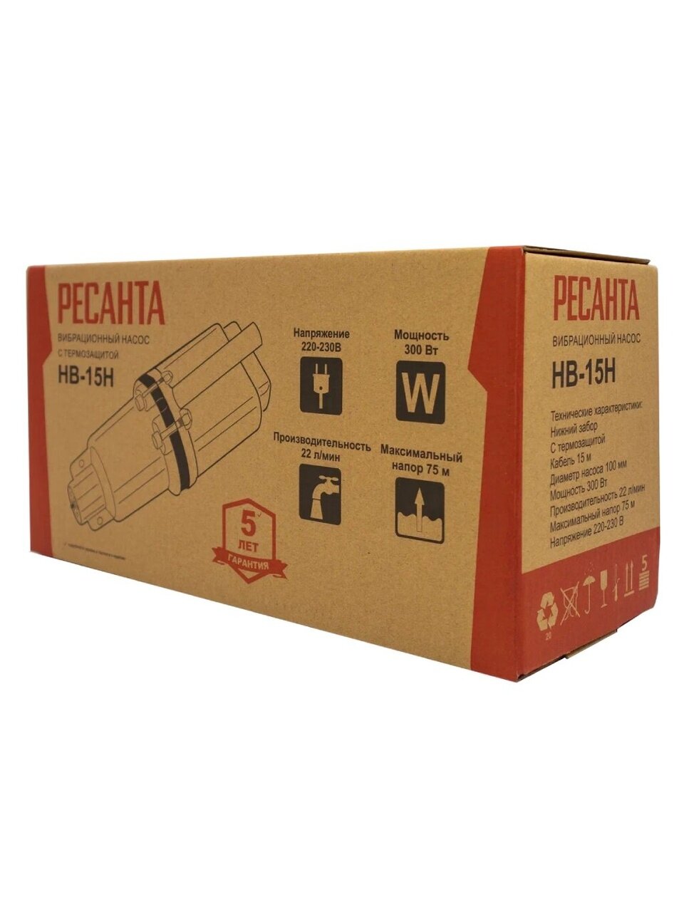Вы можете приобрести «Насос вибрационный, Ресанта, нижний забор, 15 м, 300 Вт, глубина погружения 3 м, максимальный напор 75 м, 1.32 м³/ч, НВ-15Н» и другие товары в нашем интернет-магазине в Тамбове по низким ценам и с бесплатным самовывозом.
