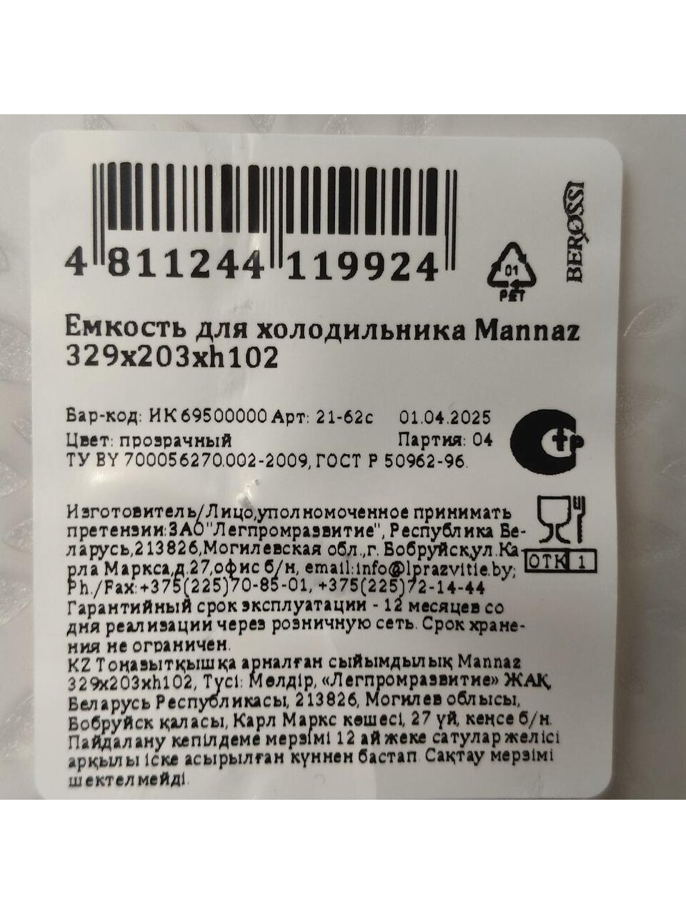 Вы можете приобрести «Контейнер для холодильника, 33х20.5х10.5 см, прозрачный, Berossi, ИК 69500000» и другие товары в нашем интернет-магазине в Воронеже по низким ценам и с бесплатным самовывозом.