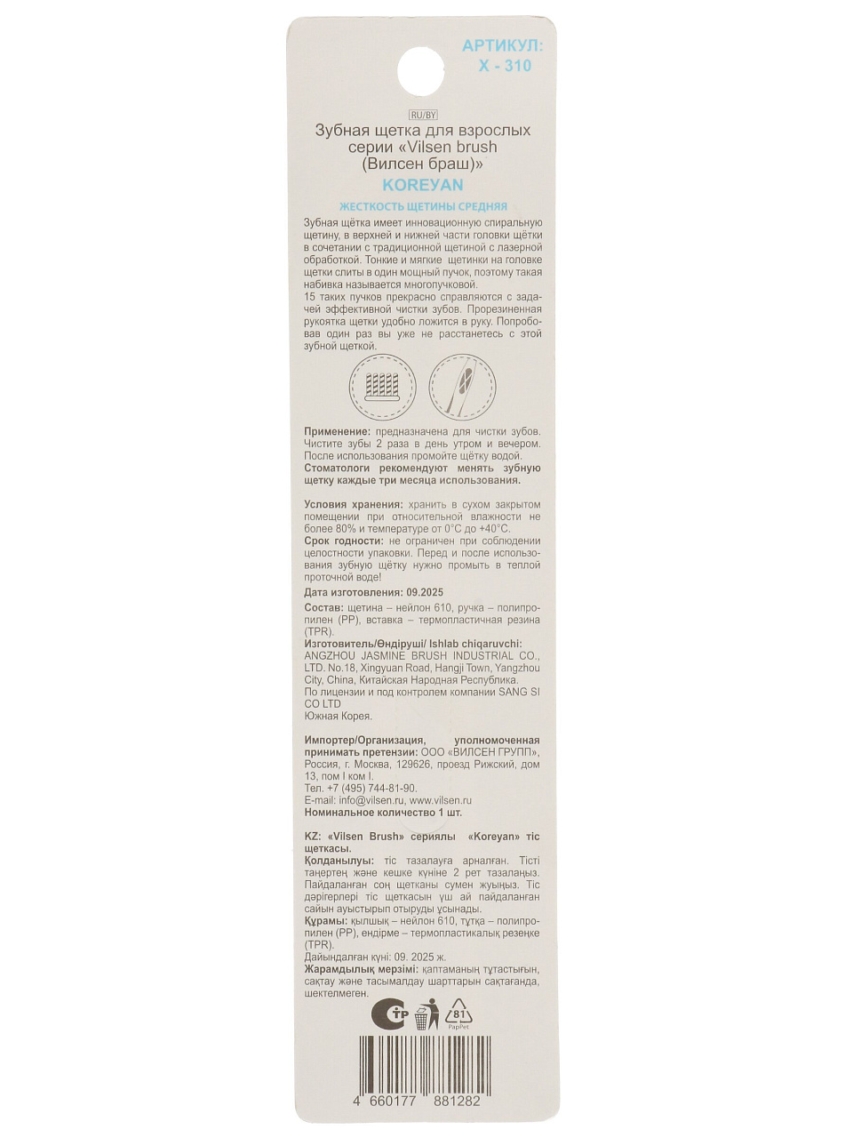 Зубная щетка Vilsen brush X-310 средней жесткости: эффективная гигиена, комфорт в использовании и оптимальная цена для дома и дачи.
